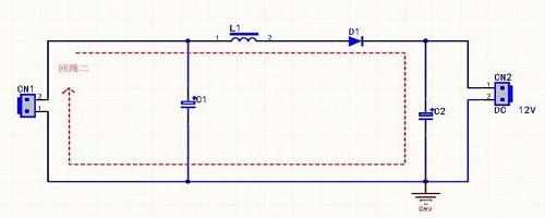 步驟二:,當(dāng)開關(guān)管斷開時(shí)候,由于電感的電流不能突變,也就是說流經(jīng)電感L的電流不會(huì)馬上變?yōu)榱悖蔷徛挠沙潆娡戤厱r(shí)的值變?yōu)榱悖@需要一個(gè)過程,而原來的電路回路已經(jīng)斷開,于是電感只能通過新電路放電,即電感開始給電容C2充電,電容兩端電壓升高,此時(shí)電壓已經(jīng)高于輸入電壓了,升壓過程中,電容要足夠大,這樣在輸出端就可以在放電過程中保持一個(gè)持續(xù)的電流,這兩個(gè)步驟不斷重復(fù),在輸出兩端就得到高于輸入電壓的電壓。