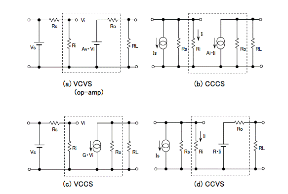 放大器具有通過放大器的放大系數增大輸入信號以進行輸出的功能。電氣/電子電路主要使用電壓和電流作為輸入信號和輸出信號。這種放大電路的配置分為以下四種類型: