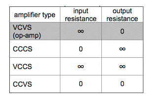 我們知道,放大后的電壓可以在不衰減的情況下提供給負載,信號源的電壓也不會衰減。因此,希望為壓控電壓源提供無窮大的輸入電阻和零輸出電阻。其他三種放大器所需的輸入電阻和輸出電阻匯總在圖 2 的表格中。當分為上述四種放大器時,運算放大器是一種電壓控制電壓源。因此,對于通常具有接近這種特性的電路配置的運算放大器來說,高輸入電阻和低輸出電阻是優選的。