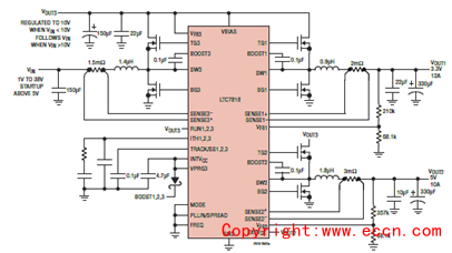 LTC7818三路輸出(降壓/降壓/升壓)同步DC/DC開關穩壓器控制方案
