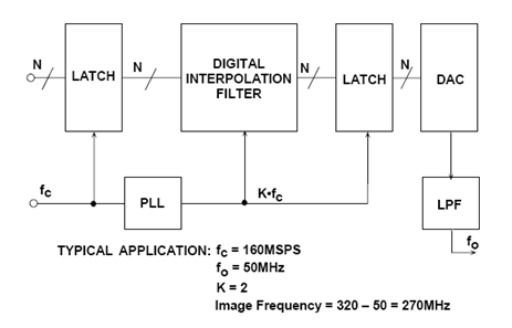 同樣的過采樣和插值原理也可用于通信領(lǐng)域的高速DAC,以便降低對輸出濾波器的要求,并利用處理增益提高SNR。