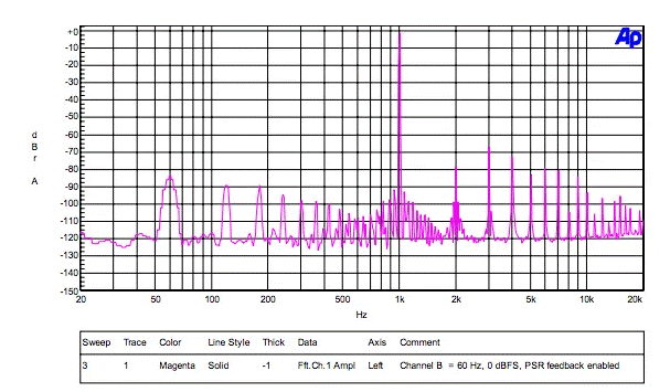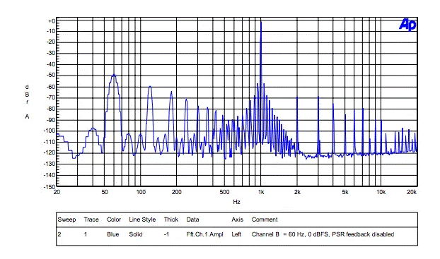 [通道A = 1 kHz,-1 dBFS,通道B = 60 Hz,0 dBFS,啟用了PSR反饋]