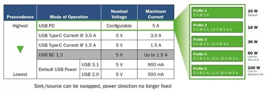 這些特性將為USB創(chuàng)建新的應(yīng)用,特別是在供電方面。繼續(xù)驅(qū)動超低功耗處理意味著可以用更少的功率完成更多的工作,并且由于USB連接的總功率現(xiàn)可達(dá)100 W (圖1),這開啟了各種各樣的可能性。但要實(shí)現(xiàn)這一潛力,需要一個(gè)能夠?qū)崿F(xiàn)預(yù)算的USB控制器。