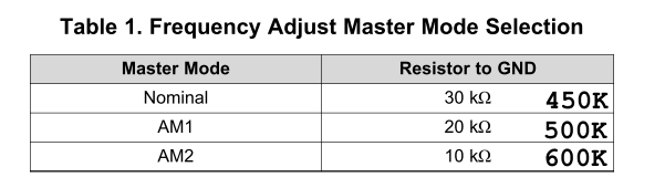 3. 設計classD 采頻率: 通過FREQ_ADJ引腳串聯電阻設定: