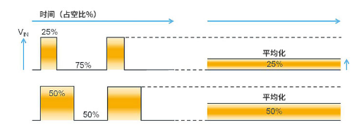 以PWM工作來說明,以S1=ON/S2=OFF將VIN供電時間設為25%、以S1=OFF/S2=ON將0V(GND)狀態設為75%的脈沖周期,當該脈沖平均化時將為25%的DC。如果VIN為10V,則Vo將為25%的2.5V。