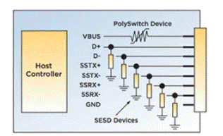 可以在VBUS上安裝PolySwitch PPTC設備,以保護主機端USB。