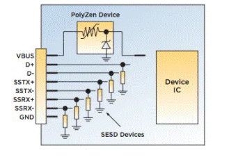 可以在VBUS上安裝PolyZen設備,以保護設備端USB。 |