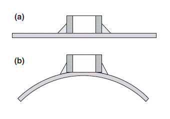 圖1 施加電壓(a)時,陶瓷電容器會膨脹;降低電壓(b)時,陶瓷電容器會收縮。