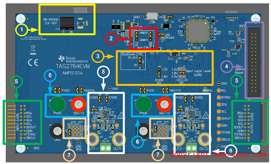 圖6.評估模塊TAS2764EVM外形圖(3D):分布圖