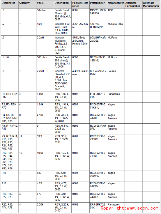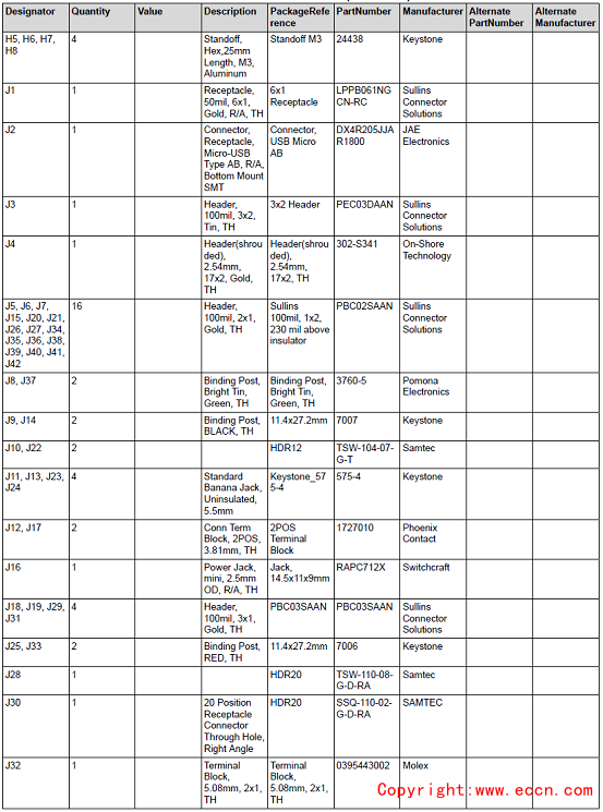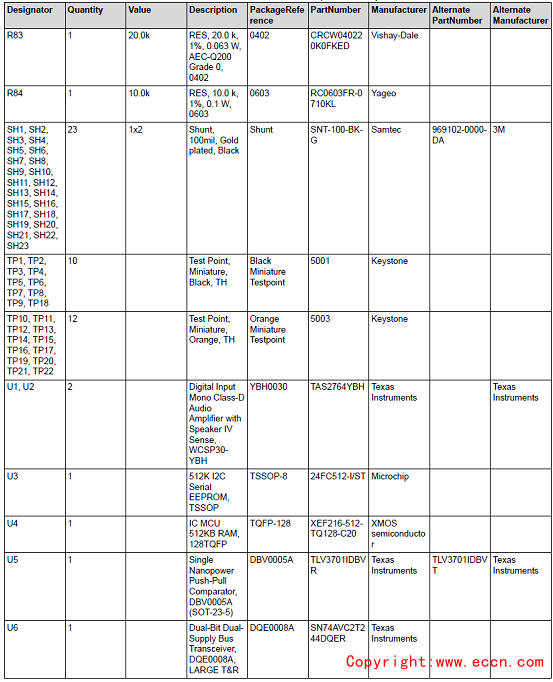 評估模塊TAS2764EVM材料清單: