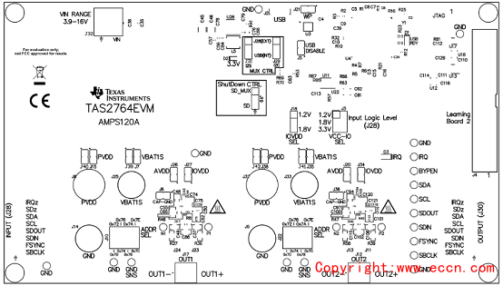 圖4.評估模塊TAS2764EVM外形圖(3D):正面