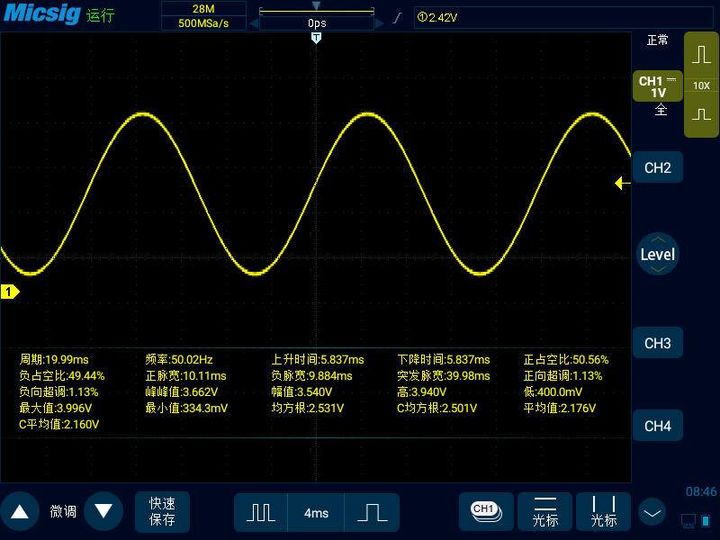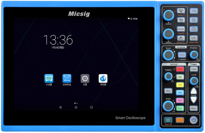 為簡單起見,本文僅以麥科信STO1104C這款帶全觸控和安卓系統的智能示波器為例來介紹,對于老式傳統的模擬示波器,隨著時代的進步已經被明顯的淘汰,也就不再復述。