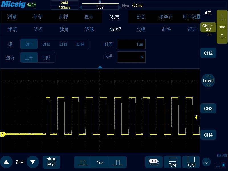 觸發功能用于同步信號的水平掃描,這對于方便我們觀察信號至關重要。 觸發器通過重復顯示輸入信號的觸發部分,使重復出現的波形在顯示器上看起來靜止不動。 示波器里最基本和常見的觸發方式就是邊沿觸發。 這是大多數人首次開始使用示波器時最有可能使用的觸發方式。 除此以外,示波器還有許多其他特殊的甚至復雜的觸發方式用于響應特定的條件,并且真正可以使示波器成為功能強大的測量工具。 這些觸發包括脈寬觸發、邏輯觸發,N邊沿觸發、欠幅觸發、斜率觸發、超時觸發、視頻觸發、串行總線觸發等。