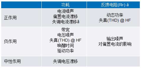 在使用低功耗運算放大器時,需要權衡的另一因素是通常較高的電壓噪聲。但是,輸入電壓噪聲是放大器最主要的噪聲(占總輸出寬帶噪聲的一部分),但也可能是電阻噪聲。總噪聲最主要的部分可能來自于輸入級中的噪聲源(例如,集電極產生散射噪聲,漏極產生熱噪聲)。1/f噪聲(閃爍噪聲)因架構而異,是由元件材料中的特殊缺陷引起的。所以,它一般取決于元件的大小。相反,電流噪聲在更低的功率電平下通常更低。但也不容忽視,尤其是在雙極放大器中。在1/f區域,1/f電流噪聲是放大器輸出端的總1/f噪聲的主要來源。其他權衡因素包括失真性能和漂移值。低功耗運算放大器通常表現出更高的總諧波失真(THD),但是和電流噪聲一樣,雙極放大器中的輸入偏置和失調電流會隨著電源電流降低而降低。失調電壓是運算放大器的另一個重要指標。一般可通過調整輸入端元件來降低影響,因此不會在低功率下導致性能大幅降低,所以VOS和VOS漂移在功率范圍內是恒定的。外部電路和反饋電阻(RF)也會影響運算放大器的性能。電阻值較高時,動態功率和諧波失真會降低,但它們會增大輸出噪聲,以及與偏置電流相關的誤差。