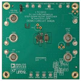 控制器的一個替代方案是單芯片解決方案,其中FET在轉換器IC內部。例如,LTC3310S單片降壓調節器(IC尺寸為3 mm×3 mm)可實現負載點解決方案,單個IC最多可提供10 A電流,并聯多個IC可提供20 A電流。這些IC分別如圖6和圖12所示。