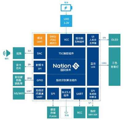 圖示3-基于Nations產品的單芯片安全智能門鎖方案的方塊圖