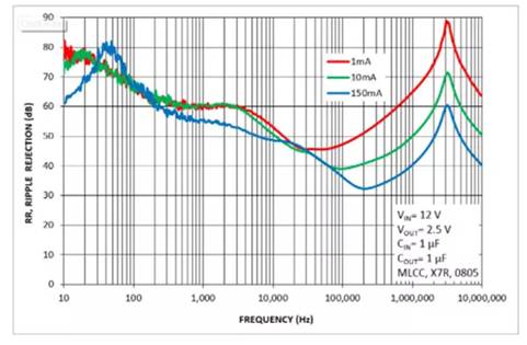 而外部噪聲是由外界影響(輸入處的紋波——實際源)產生的各種噪聲,輸入波紋與電源抑制比(PSRR)有關。