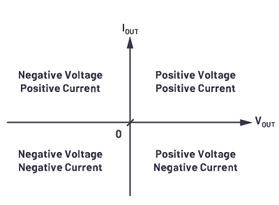 圖2顯示了四象限對于電源的含義。在坐標系的象限中,x軸表示電壓,y軸表示電流。電流和電壓可以為正或為負。