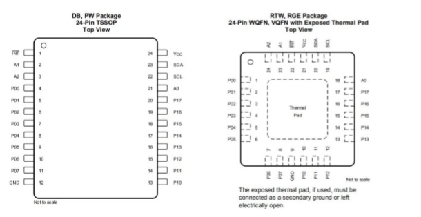 I2C IO 擴展,主要有16 路和8路,主流是16路,各家基本兼容。封裝上TSSOP24、QFN24、 SOP24、SSOP24 都有。