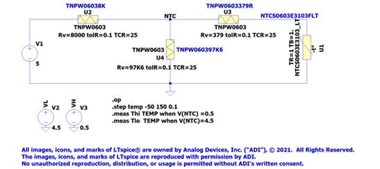 圖2 –圖片來源:LTspice XVII模擬芯片或ADC輸入電阻/熱敏電阻分壓電橋電壓,