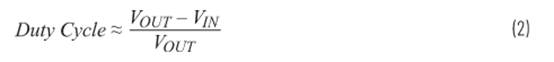 最低工作電壓由轉(zhuǎn)換器的最大占空比(約為90%)決定。根據(jù)公式