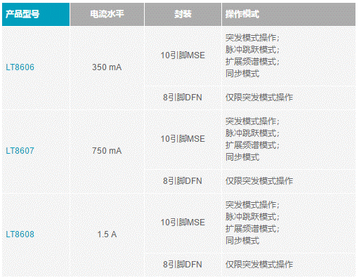 mm x 2 mm DFN封裝,因而可安放在狹小的空間里。如表1所示,它們的不同之處在于輸出電流能力。