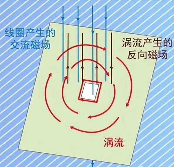 思考這個(gè)問題前首先回顧了解下渦流效應(yīng)。磁感線由N到S級(jí),存在交變磁場經(jīng)過導(dǎo)體表面時(shí),由電磁感應(yīng)定律可知,在導(dǎo)體表面形成感應(yīng)電流,感應(yīng)電流產(chǎn)生的磁場方向總是會(huì)起到消弱原磁場大小的作用。