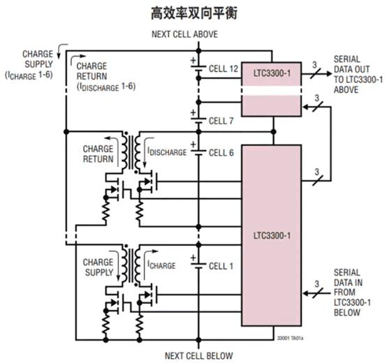 圖4:LTC3300-1應用于BMS的原理圖(圖源:ADI)
