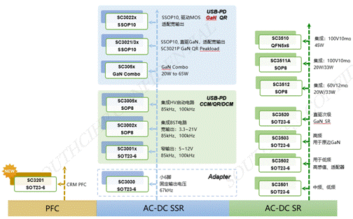 緊接著又推出65W合封氮化鎵功率芯片SC3057,功率密度再創新高。