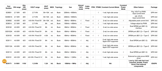 南芯已推出包括SC8102、SC8112、SC8701、SC8001/2等多款DC/DC電源管理芯片,完美適用于車規、多口墻充、適配器、HUB和工業應用等多場景。近期更是隆重推出集成Power
