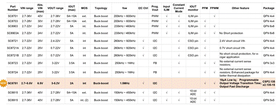 圖:南芯Buck-Boost DCDC選型表