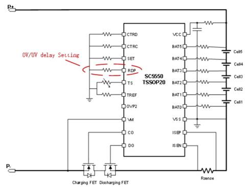 圖2. SC5550支持外部電阻調節OVP和UVP延時