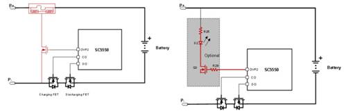 由于振動或其它機械應力等原因,在多串電池包里電芯連接線及NTC連線有可能斷開,一旦斷開會導致電芯電壓和溫度檢測異常。SC5550支持電芯斷線檢測功能,支持溫度檢測NTC斷線檢測。當檢測到電芯連接線斷開或者NTC連接線斷開,SC5550將關斷充電及放電通路,直到錯誤狀態恢復。