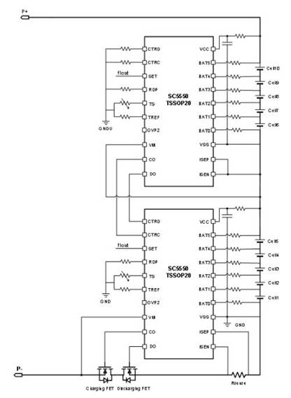圖4. SC5550通過堆疊可支持6~15串電池