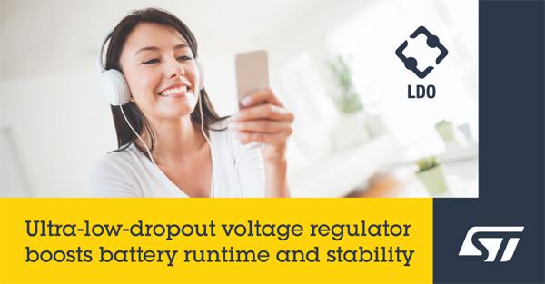 意法半導體的LD56020 200mA低壓降穩壓器使用1.1V 至 5.5V電源,輸出噪聲低,適合對穩定性和電池續航有較高要求的應用。