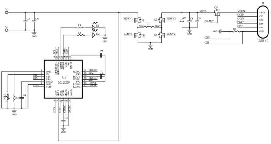 M12121是一款支持PD3.1的單口全兼容快充協議IC,集成了微處理器、USB Type-C接口、快充協議控制器,支持DFP/Source 和UFP/Sink功能,并集成了電源路徑MOS和高精度采樣電阻。其 CATH 管腳用于連接前級DC-DC的反饋節點或驅動AC-DC的反饋光耦。僅需極少的元件,即可組成高性能的充放電解決方案。 |