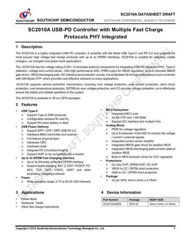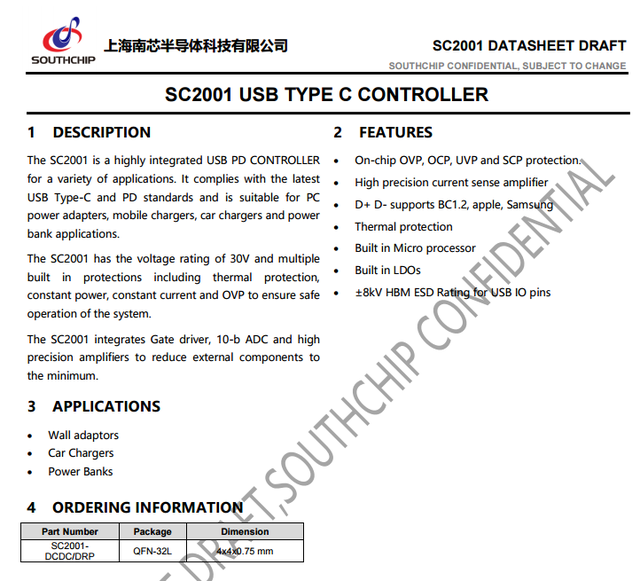 1、南芯推出USB PD協議芯片,支持5口快充