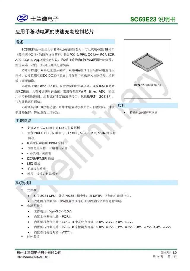 士蘭SC59E23是一顆集成協議和數字電源控制器,內置了USB PD協議的移動電源升降壓芯片,可實現快充移動電源更高集成度,有助于體積輕薄化。