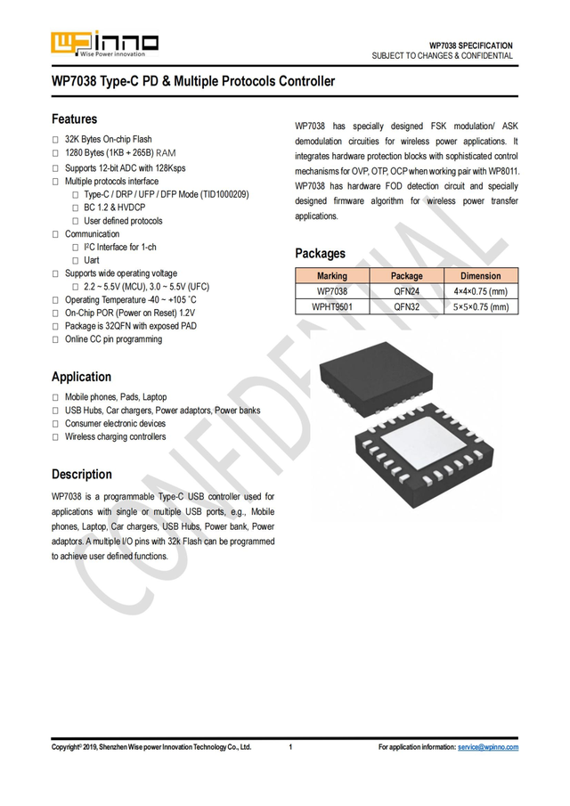 維普創新WP7038資料信息。