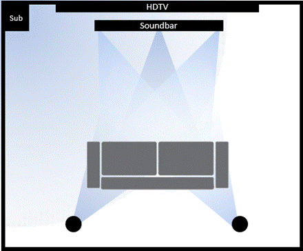 入門級條形音箱只是電視機內置揚聲器的擴展——可以通過HDMI或光纖輕松地連接,能在一定程度上提供更好的音頻體驗。有些可能帶有與條形音箱之間采用無線連接的超重低音揚聲器(又稱低音炮),以提供增強的低音。盡管這種設置很方便,但有限數量的揚聲器永遠無法提供與HDTV中現有的視頻體驗相同的音頻體驗。將音頻質量提升到視頻質量水平的唯一方法是讓聲音環繞自己,而做到這一點的唯一方法是在觀眾前后都安裝揚聲器。
