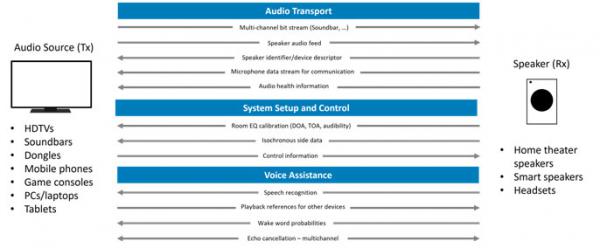 WiSA的傳輸層技術可管理音頻流、控制數據、系統設置和語音輔助