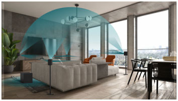 利用智能中心揚聲器通過ARC/eARC連接到高清電視,用無線方式連接2個前置揚聲器,2個后置揚聲器和一個低音炮,以實現一個完整的5.1沉浸式系統。