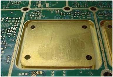 主要采用的措施涉及提供額外的銅表面、使用更厚的走線,以及在產生最大熱量的元器件下方插入散熱孔。一種能散發更多熱量的更激進的技術,包括把真正的銅塊插入到PCB或施加到最外層,這種銅塊通常呈硬幣形狀,因此得名“銅幣”。在將銅幣單獨加工后,可將其焊接或直接貼附在PCB上,也可以將其插入內層,通過散熱孔與外層連接。圖1所示的PCB中制作了一個特殊的空腔來容納一枚銅幣。