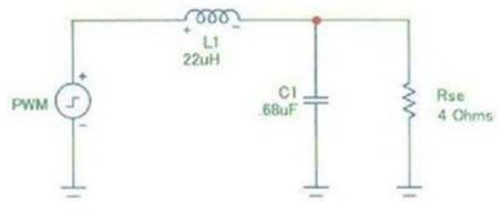 圖1使用標準值Q=0.707 RL= 4歐姆Fc = 40 KHz的單端LC輸出濾波器