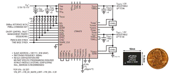 具數字電源系統管理功能的雙路9A,降壓型μModule穩壓器