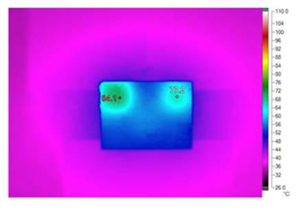 圖4. V IN = 12V,V O = 1.0V / 125A,400LFM氣流,溫升= 66.2°C,TA = 23°C時的熱圖