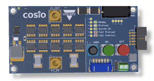 為此,Vishay推出了一種自恢復電子保險絲參考設計(如圖1所示)。該方案可以在48V電壓下開關高達200A的負載,而整個方案都“濃縮”在一塊小型的雙面FR4印刷電路板上,且僅需被動冷卻即可。這個電子保險在安全可靠地實現開關操作的同時,還能夠提供必要的電路保護功能,且所有操作都是可恢復的,比傳統的機械繼電器具有更長的使用壽命。