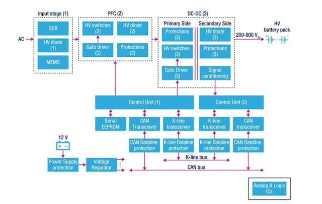圖 2:電動汽車電氣系統框圖。(來源:意法半導體)