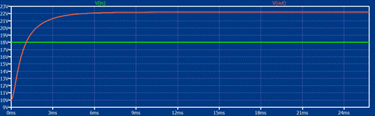 圖六中的曲線圖顯示了Boost B-A模式下的輸入和輸出電壓。其輸入電壓為18V,輸出電壓約為22V,因此電路可用作升壓器。其開關頻率選擇為100 kHz,輸出端負載為22 Ohm,功耗約為22W。