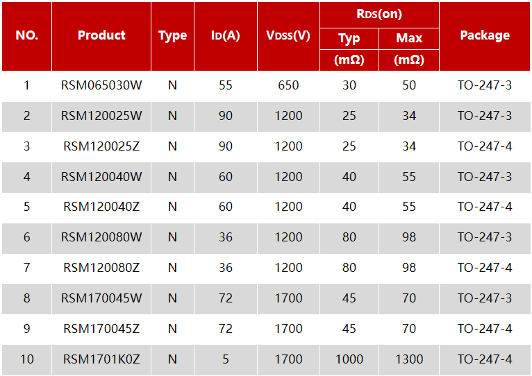 瑞森-碳化硅MOSFET選型
